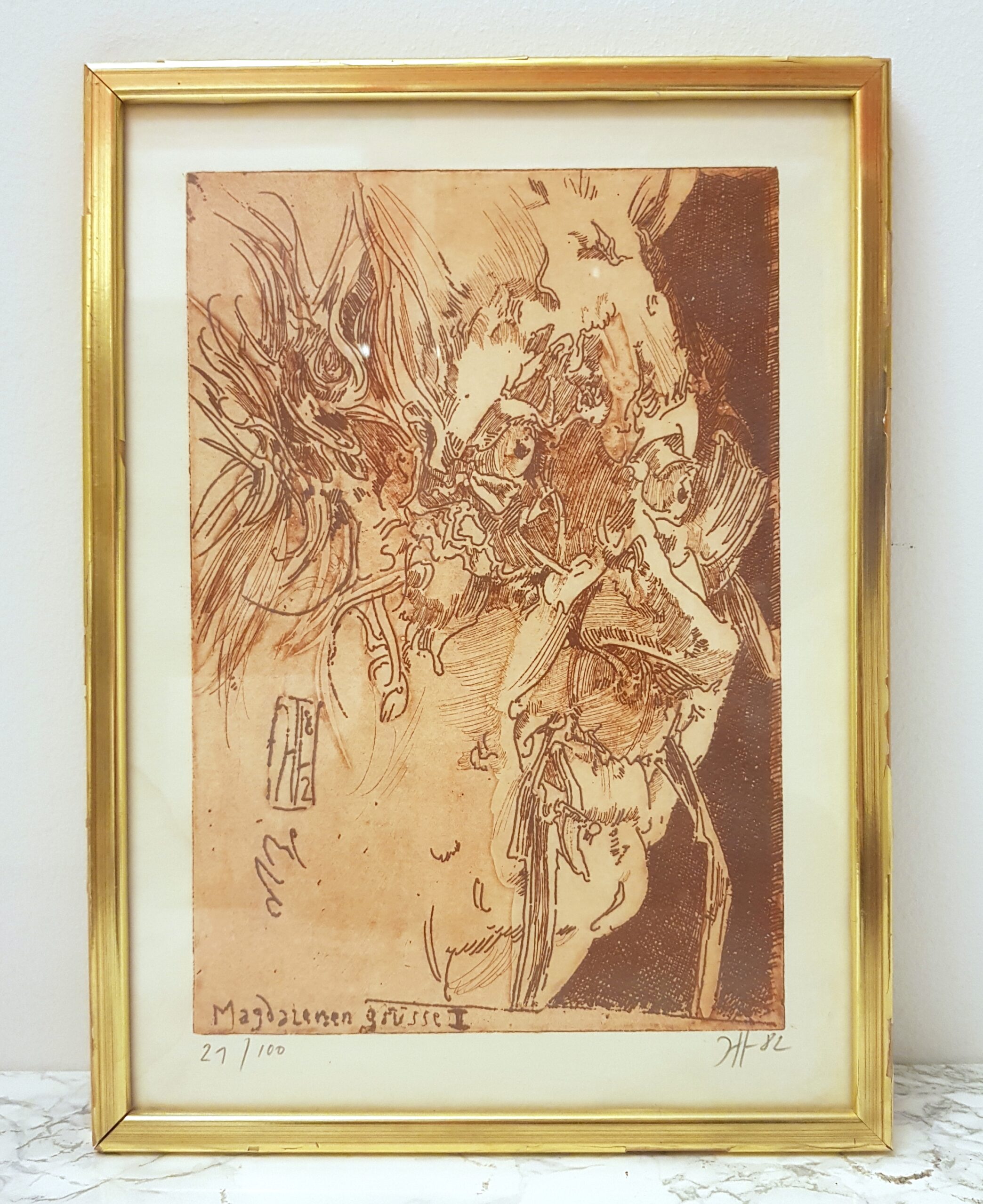 HORST JANSSEN, etsning, ‘Magadalenen Grüsse II’, no. 21/100, 1982